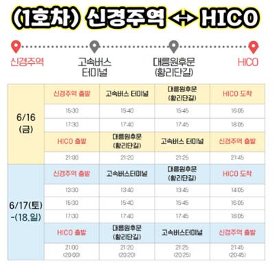 6월 16일과 17~18일 셔틀버스 운영시간이 다릅니다. 이 점 꼭 확인해 주시기 바랍니다.