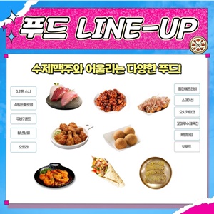 맛있는 맥주에 특별한 먹거리가 빠질 수 없겠죠? 맥주에 어울리는 음식들을 엄선하여 라인업 시켰으니 맥주와 맛있는 먹거리의 조화 충분히 느끼고 오시기 바랍니다.